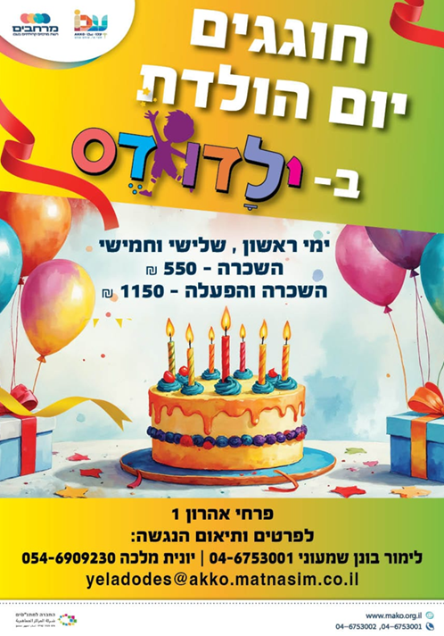 ביקשתם קיבלתם!ילדודס - חדר יום הולדתימי ראשון, שלישי, וחמישי